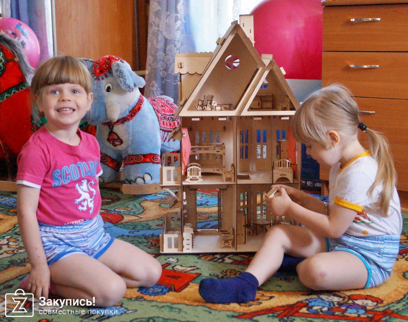 Брала домик в комплекте со всеми наборами мебели на подарок. Сегодня утром звонила мама именинницы сказать отдельное спасибо. В восторге обе, всей семьей собирали.