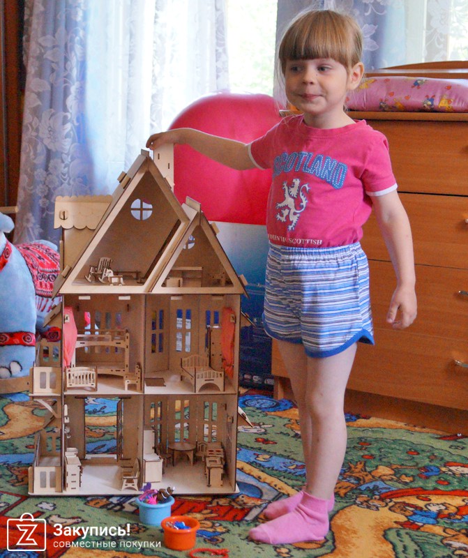 Заказывала домик и 5 наборов мебели, очень понравился всем! Дочка вообще в восторге). Собрал папа наш все быстро, за 3 часа. Позже провел еще свет в доме)
