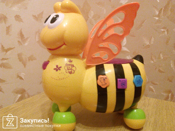 Получили перед Новым годом музыкальную пчелку. Одна из любимых игрушек, пережила множество ударов и падений, все вынесла. Отличный звук, приятная подсветка. Покупали подобную игрушку в Детском мире, очень тихий звук, без подсветки, мало мелодий и в два раза дороже. Кроме игрушки заказывали бытовую химию и кучу хозяйственных товаров. Выкуп прошел быстро, все получили в целости и в отличном качестве. Спасибо организатору.