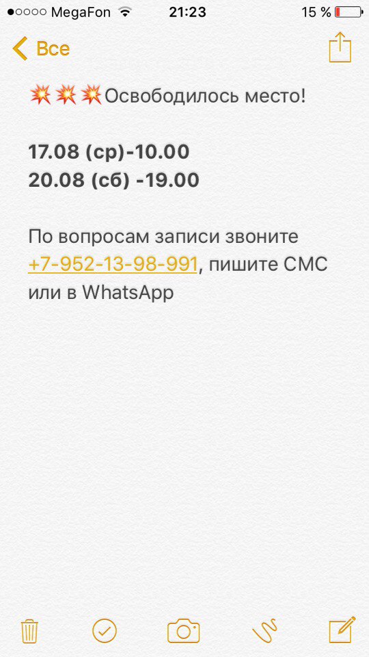 Девочки, в связи со своей загруженностью, я стала появляться на сайте реже. Вы, конечно, можете записываться и здесь, но оперативнее и быстрее будет если вы свяжетесь со мной по телефону, WhatsApp, Viber или СМС. Телефон практически всегда рядом))))