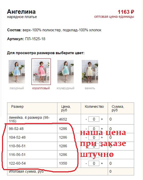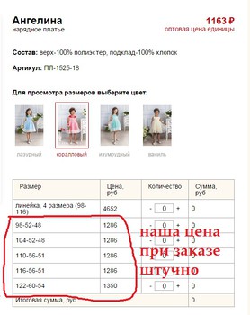Девочки! Обращаю ваше внимание на то что наша цена штучная, не та которая выделена красным цветом (это цена для рядов), а та что в табличке открывается при выборе цвета. фото кликабельно