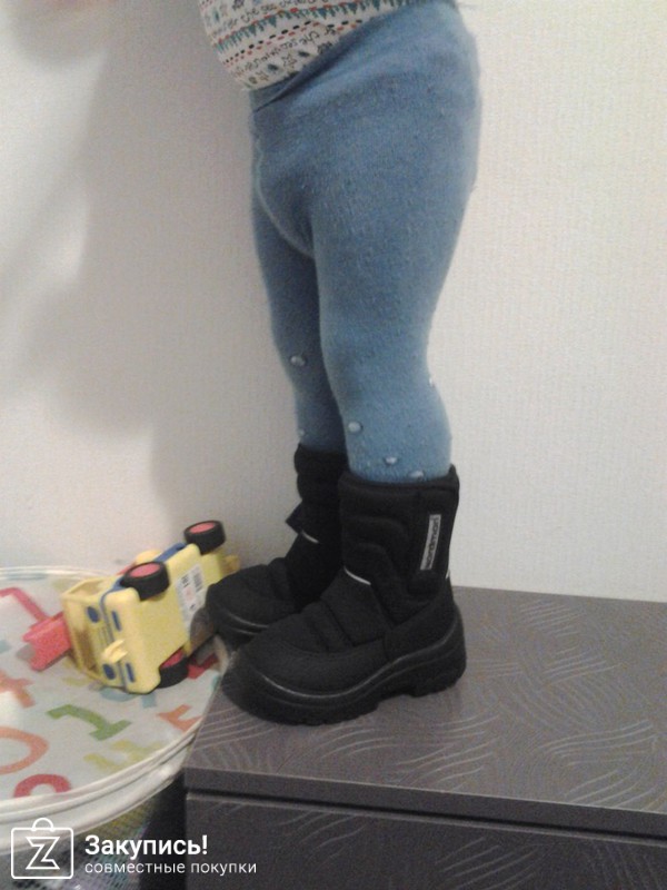 Добавляю фото к отзыву. На фото 2 модели. на мне со съемным меховым сапожком 34/35, на мой 35 впритык с тонким носком. Не знаю смогу носить в -20 или нет, так как впритык. на сыне 22/23 с флисовым вшитым сапожком, сегодня гуляли в лесу в -3, одевали без носка на тонкие колготки, ноги за 2 часа не замерзли. Единственное он еще малыш 1,3, если упадет сам встать не может. Очень легко моются. по его размеру сказать не могу носили 20 впритык, поэтому я думаю у нас есть еще запасик) весна покажет))