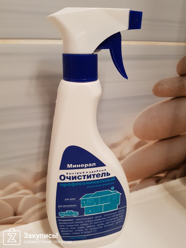 1 Очиститель профессиональный. Отчищает действительно все. Я даже окна им мыла. Была в отъезде, не успела сразу, в итоге снаружи на стеклах присохла строительная пыль. Намочила, набрызгала очистителен и В-С-Е!!! Про всякие мелкие пятна вообще слов нет - отмываются дочиста.