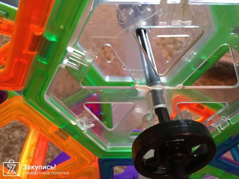 Конструктор оставил только приятное впечатление, с оригиналом не знакома, поэтому сравнить не с чем. Магниты не особо мощные, но до 10 деталей держатся. Собрали колесо-обозрения, но при соединении шестиугольника магнитного с прозрачный оба треснули, на фото видно. И много ненужных, на мой взгляд, деталей (прозрачные вставки с картинками).