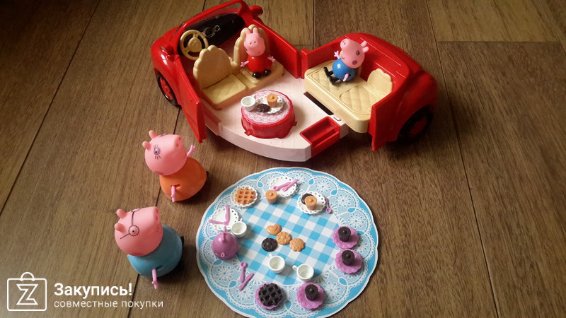 Большое спасибо организатору за хорошую закупку и скорость, особенно перед новым годом! Заказала машинку Свинки Пеппы. Она оказалась даже интересней, чем на картинке. У нее открывается всего одна дверь, зато сама машинка раздвигается посередине и можно выдвинуть еще один небольшой столик. Еще у машины горят фары и играет музыка. Багажник открывается, спинки передних кресел двигаются. В набор входит вся семья Пеппы, набор посуды, даже малюсенькие ложки-вилки, картонная скатерть, тарелки, кружки и печенье с кексами. Дети в восторге!