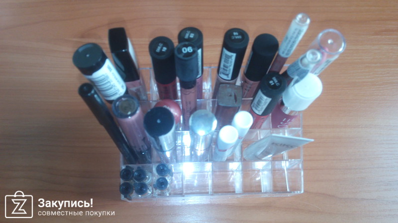 Акриловый органайзер для помад 24 ячейки с оргом 147 рублей.