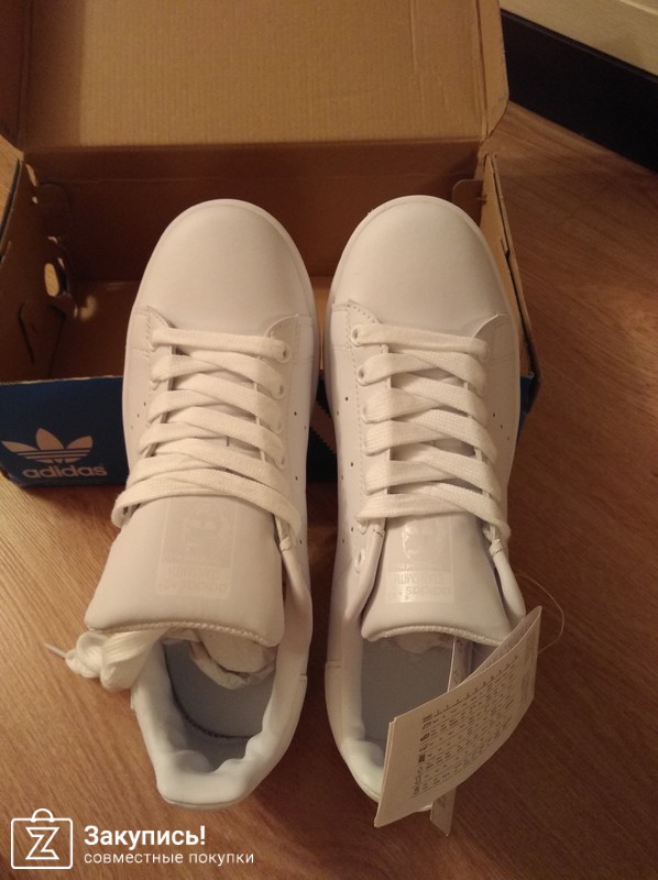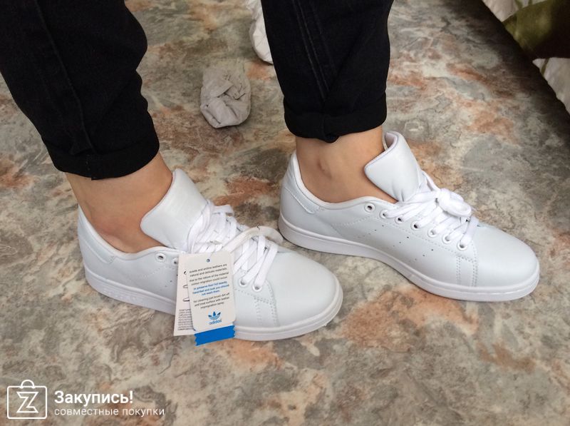 Красивые кроссовки Adidas Stan Smith, мне нравятся:) единственное, что, когда надеваешь, ощущение, что маломерят (по new balance было такое же), но похоже, что разносятся (new balance ношу почти не снимая - очень удобно). На мой 37 купленный 37 очень впритык.