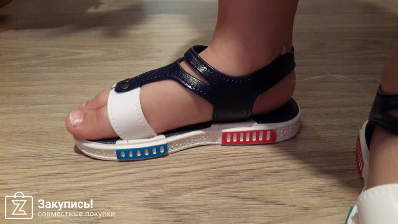 Босоножки бело-синие размер 29 по стельке 15,5см. Нога у ребенка 15,2. Немного нога уходит вперед, но вполне нормально. Брали для отпуска, поэтому устраивает размер вполне.