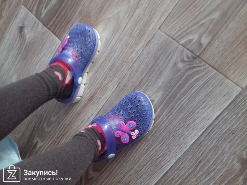 Заказывала доче сабо 25 рр, они идут в размер, на наши 15 см немного с запасом, на ножке свободно (у нас нога худая). Полностью резиновые, мягкие. Несмотря на то, что широковаты нам - понравились и мне, и доче. Но, есть недочеты - очень сильный запах (резина с какой-то примесью) и в одном сабо внутри на стельке пузырь воздушный примерно 2*2 см (надеюсь не будет мешать доче).