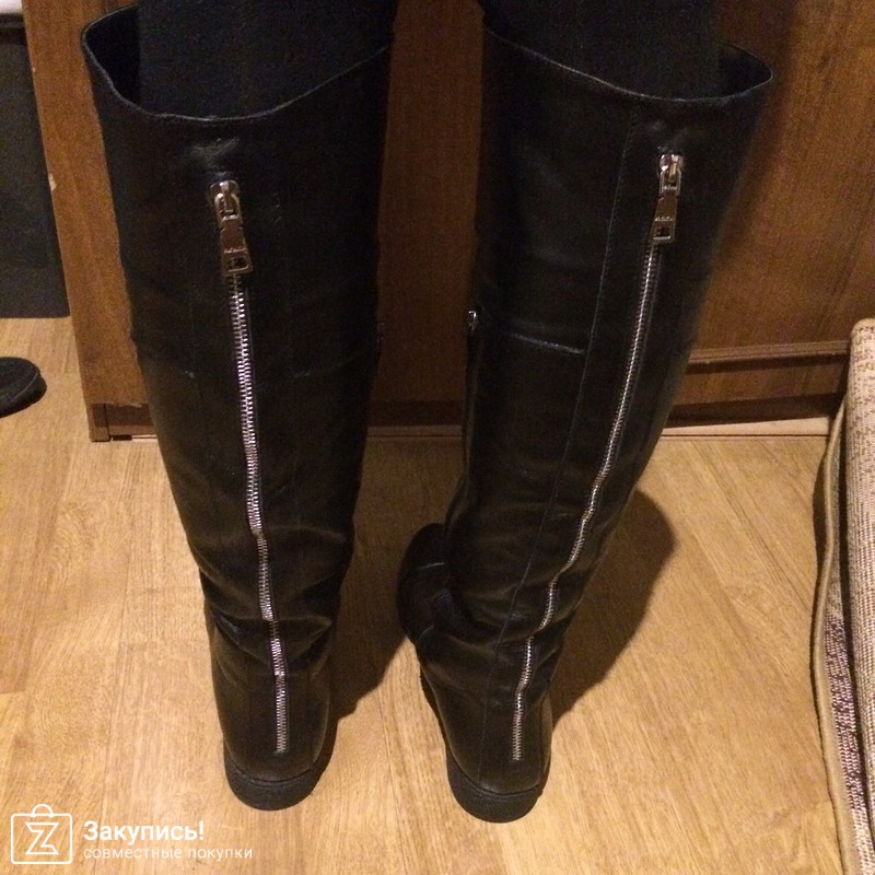 Забыла написать что это зима, меха нет только на колене, около 8 см кожа, если измерять сверху вниз . И еще рост модели на фото) 175см примерно и сапоги ей чуть-чуть прикрывают колено, мой рост 162см и колено сапоги закрывают почти полностью.
