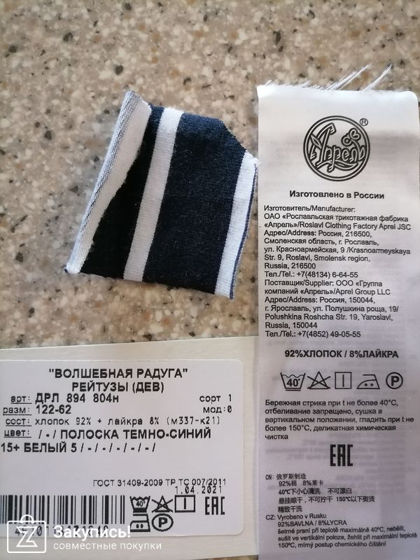 Лосинки отличные, хлопок хорошо тянется, резинка не тугая, в размер. Темно - синие в белую полоску. После стирки в тёплой воде полиняли и белые полосы теперь сероватые. Доча говорит удобные, мягкие.