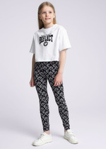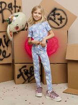 Леггинсы для девочек прилегающего силуэта. Пояс отрезной, широкий, с эластичной тесьмой внутри.Посадка высокая.