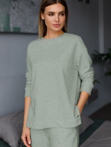 Брюки прямые для дома из хлопкового трикотажного полотна. Пояс на внутренней резинке, боковые карманы с отрезным бочком.