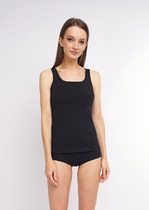 Майка женская из эластичного хлопкового полотна. Широкая бретель. В боковом шве фирменный жаккардовый логотип.— Описание у На сайте поставщика
