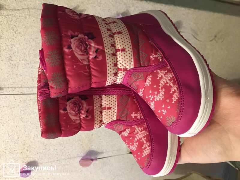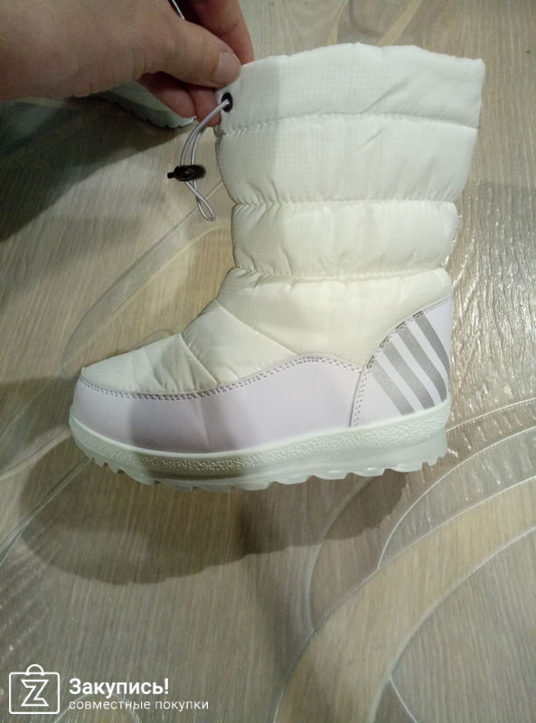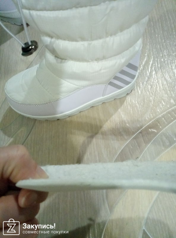 Внешне сапожки очень понравились, НО они не зимние: стелька и взъем совсем без меха, сверху есть немного меха. Голяшка не затягивается, т.к. резинка не по кругу вдета, а видимо для красоты. Все равно организатору спасибо, будем носить весной:)