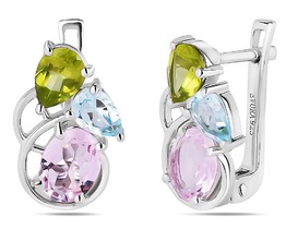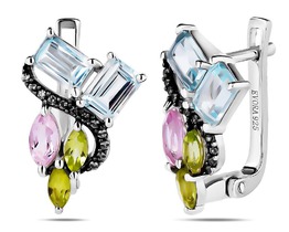 Серьги, арт.658610 Серебро Серебро 925, 4,37 гр., морганит , перидот , топаз , нанорубин