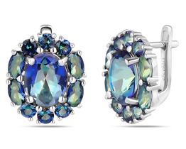Серьги, арт.658579 Серебро Серебро 925, 3,93 гр., мистик кварц синий , оливковая шпинель