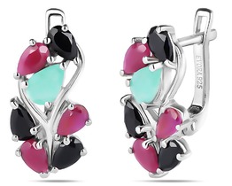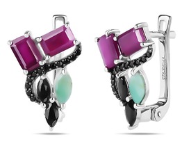 Серьги, арт.658611 Серебро Серебро 925, 4,55 гр., изумруд берилл , рубин корунд , сапфир корунд , шпинель