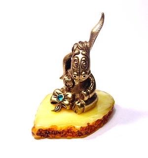 Янтарь, латунь 6 см. Избушка с бабой Ягой. Поворачивается на курьих ножках