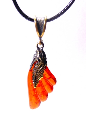 1615-1 Подвеска Клык Волка с янтарем