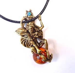 Янтарь, латунь 4 см