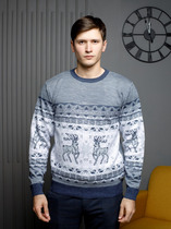 Джемпер мужскойСтрана производства: РоссияЦвет: джинсСостав: 30% шерсть, 70% акрилАртикул: m-068Размер: 48,50,52,54,56
