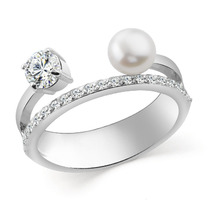 Кольцо с иск.жемчугом родированное серебро 925*