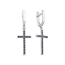 Серьги с фианитом родированные серебро 925*