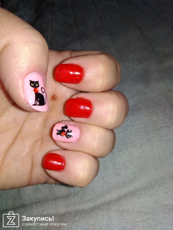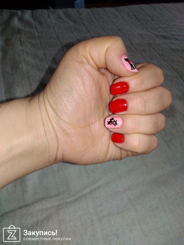 И мой третий эксперимент. На одной руке 3д слайдер кошка, на другой лотос простой, не 3д. Третий раз уже наносить было привычней. И да, как написал производитель, что при нанесении топа сверху - пленочка растворяется, а рисунок остается. Поэтому топ лучше наносить и одним-двумя жирными мазками. Чтобы не получилось как у меня с кошкой - я стала водить кистью и у кошки немного поехали усы. Но это было не критично, я вовремя спохватилась и решила оставить как есть. С лотосом никаких сложностей не возникло.Планирую дальше экспериментировать, ну и заказывать еще)) Извиняюсь за фото, может не совсем красивые, но, надеюсь, все что нужно - видно.