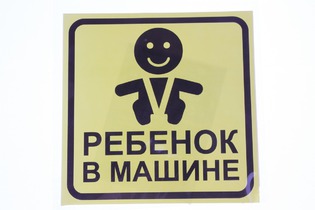 Знак самоклеящийся, наружный "Ребенок в машине" квадратный