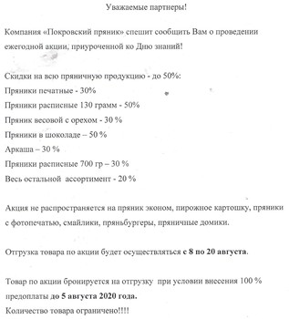 Компания «Покровский пряник» спешит сообщить Вам о проведении ежегодной акции, приуроченной ко Дню знаний!!!