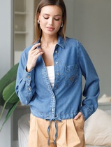 Укороченная блузка с кулиской из джинсового лиоцелла