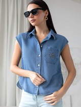 Укороченная блузка с коротким рукавом из джинсового лиоцелла