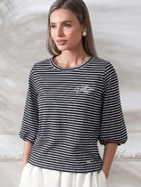 Блузка свободного силуэта в полоску с рукавом 3/4 из хлопка