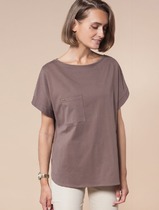 Состав: 92%Хлопок 8%ПУ (полиуретан)Футболка прямая с подплечником и широким плечом, декорированным пайетками.