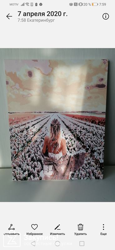 Так как я попала в дозаказ закупки, ждать стопа мне долго не пришлось. Доставка достаточно длительная , но об этом организатор предупреждала. Картину выбирали на сайте , но фактические цвета с фото на сайте не совсем совпадают. Но цена решает все . Качество холста и красок устроило . Выбираем на сайте новые картины