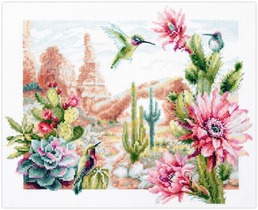 хлопковая канва Aida 14 ct, хлопковое мулине (20 цв.), игла, цветная символьная схема, инструкция по вышиванию.