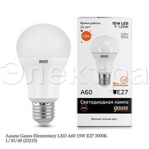 Лампа Gauss Elementary LED A60 15W E27 3000K 1/10/40 (23215)