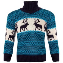 Детский свитер с оленями синий