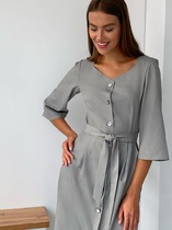 S2277 ПЛАТЬЕ С ФИГУРНЫМ ВЫРЕЗОМ ИЗ СВЕТЛО-СЕРОГО КОСТЮМНОГО ХЛОПКА