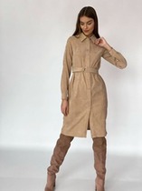 s3627 Платье-рубашка из хлопкового вельвета в цвете nude