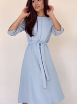S4175 ПЛАТЬЕ-ТРАПЕЦИЯ С ПЛАНКОЙ ГОЛУБОЕ