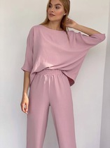 4152 КОСТЮМ ИЗ ХЛОПКА В ПИЖАМНОМ СТИЛЕ ПУДРОВЫЙ