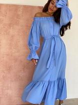 4357 ПЛАТЬЕ С ОТКРЫТЫМИ ПЛЕЧАМИ ГОЛУБОЕ