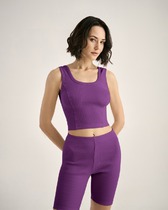 Майка из кашкорсе, облегающая с отстроченными рельефами. Горловина и проймы окантованы основной тканью— Описание у На сайте поставщика