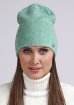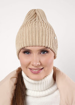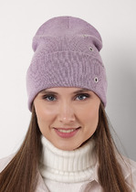 Шапка женская двойная, декорированная круглой маталлической нашивкой. Подходит в осенне-зимний период.— Описание у На сайте поставщика