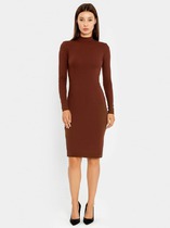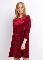 Бархатное платье простого покроя, расклешённое книзу с втачным рукавом длиной 3/4. По спинке застёжка на пуговицу.— Описание у На сайте поставщика