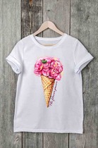 Туника - силуэт "баллон" на поясе. На полочке - принт и объемный карман. Рукав короткий. Состав: Кулирка. Размеры: 42-56.