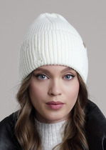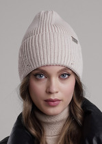 Женская двойная шапка, декорирована нашивкой логотип. Подойдёт для холодной осени- тёплой зимы.— Описание у На сайте поставщика