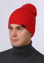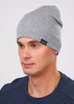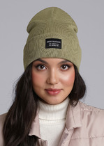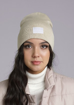 Шапка связаная ластиком, декорирована стильной нашивкой. Подойдёт для осенне- весеннего периода.— Описание у На сайте поставщика